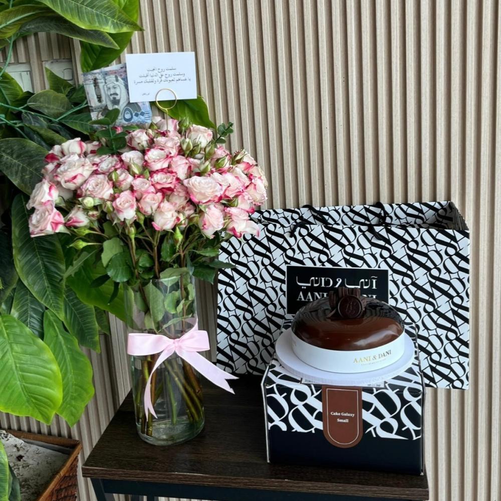 تم تصميم هذا البوكس بعناية فائقة ليكون هدية متكاملة تجمع بين جمال الورود الطبيعية ونكهة الكيك اللذيذة من علامة إني وداني الشهيرة، ليجعل كل مناسبة أكثر تميزًا وأناقة.